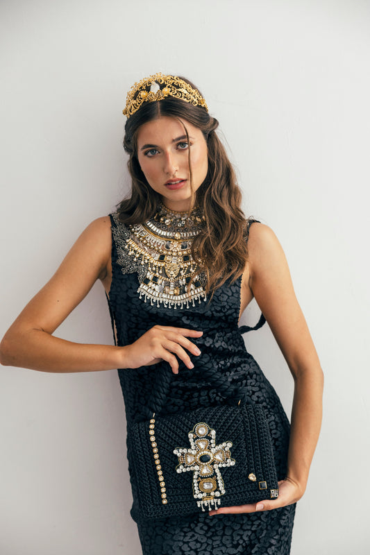 No nosso atelier desenhamos coroas, tiaras, toucados, bandoletes, brincos, pulseiras de mão e braço, pulseiras tradicionais, anéis, tops, saias, casacos... Tudo! Desenhamos e produzimos cada peça à sua medida.