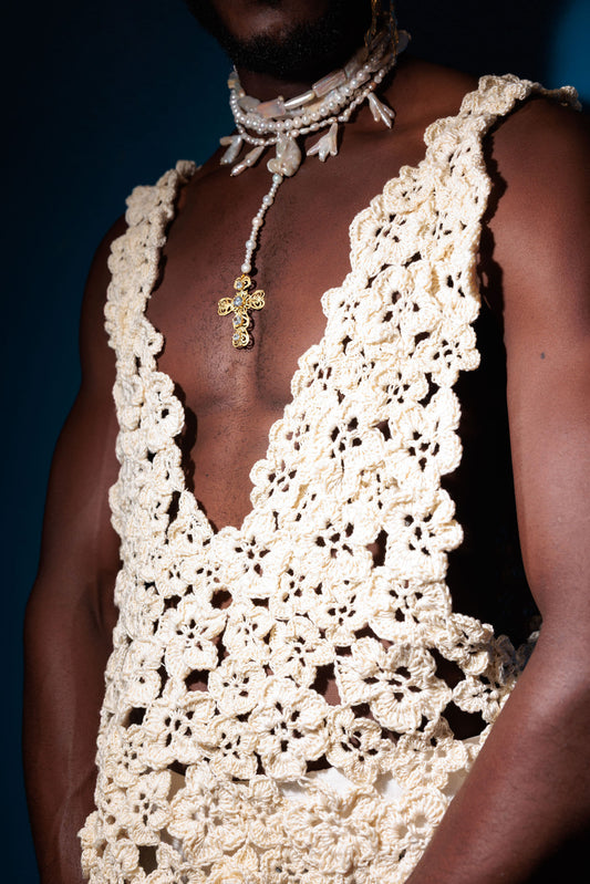 In our studio we design crowns, tiaras, headdresses, headbands, earrings, hand and arm bracelets, traditional bracelets, rings, tops, skirts, coats... Everything! We design and produce each piece to your specifications.