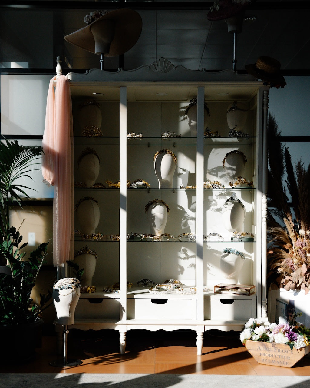 In addition to the store space, we have a second floor dedicated to personalized services. We welcome brides and anyone who wants to create unique pieces with us - from clothing and crowns to other jewelry.