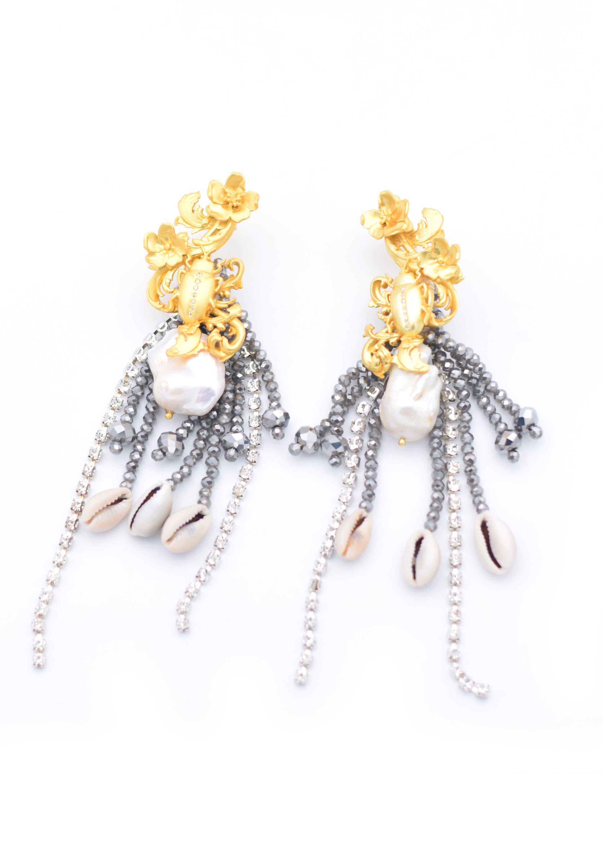 Our earrings are made of brass, gold plated and are sold as a pair. The earring does not hold through holes.