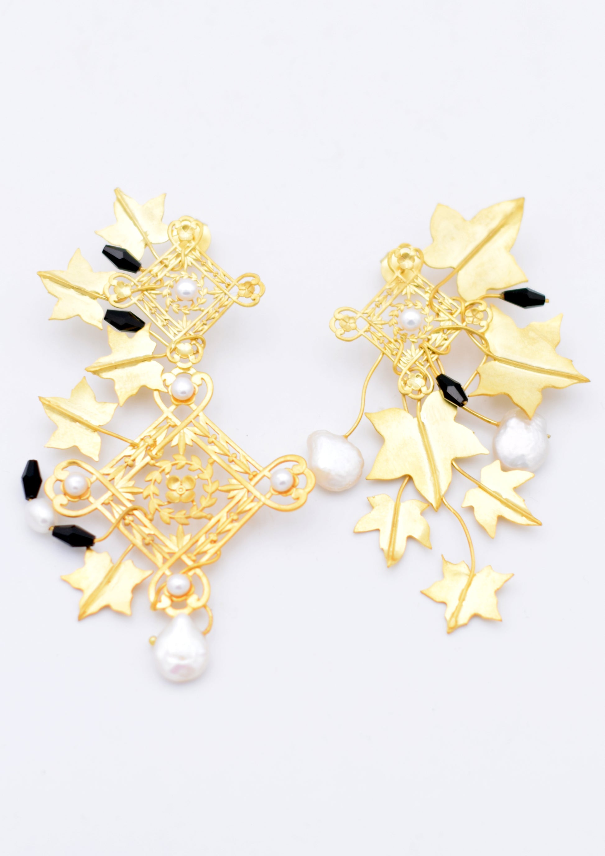 Our earrings are made of brass, gold plated and are sold as a pair. The earring does not hold through holes.