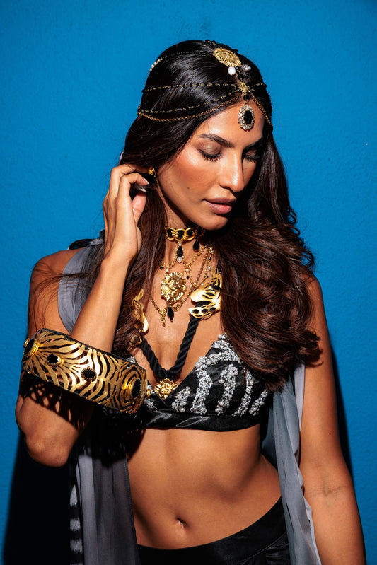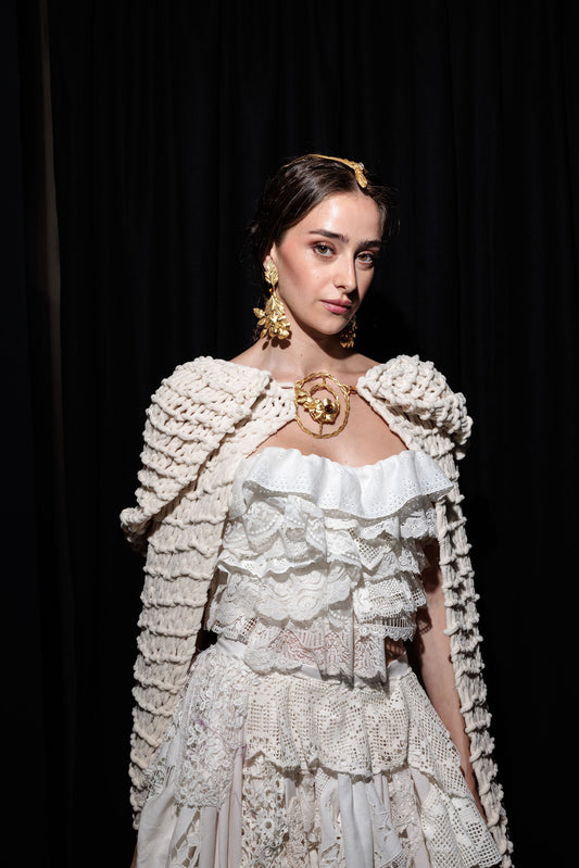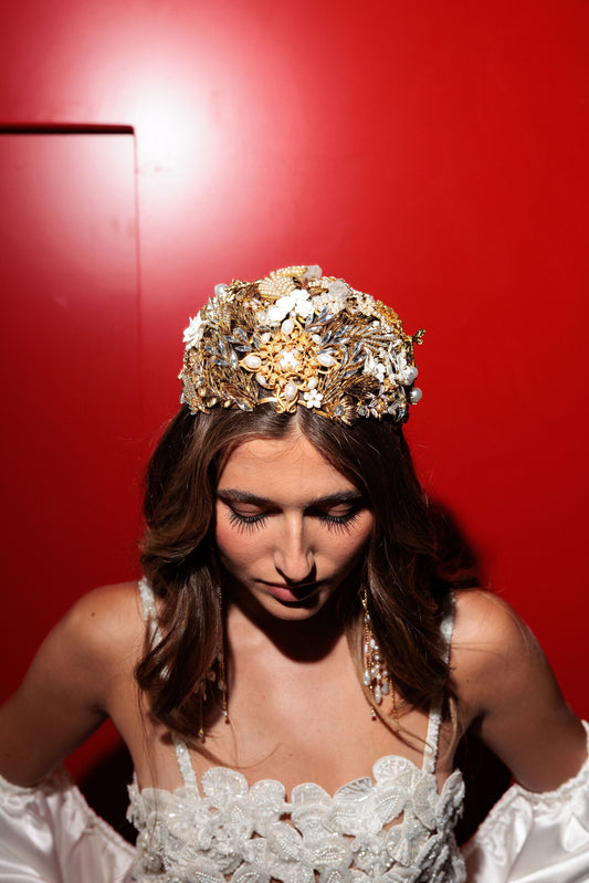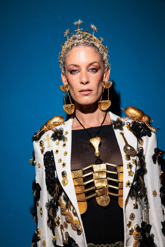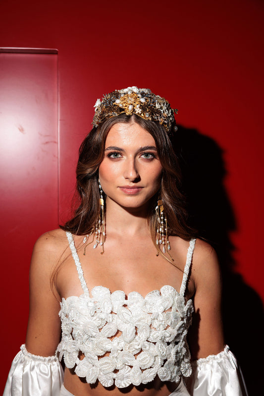 En nuestro estudio diseñamos coronas, tiaras, tocados, diademas, pendientes, pulseras para manos y brazos, pulseras tradicionales, anillos, tops, faldas, abrigos… ¡Todo! Diseñamos y producimos cada pieza según tus especificaciones.