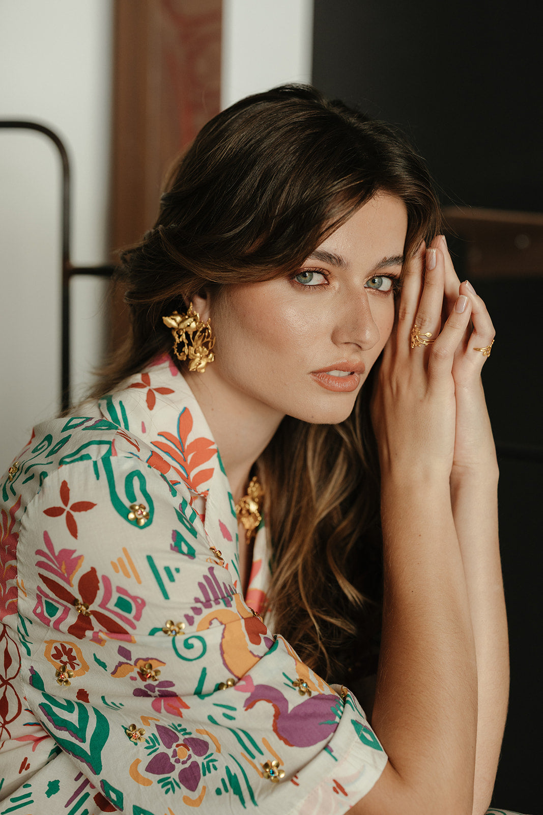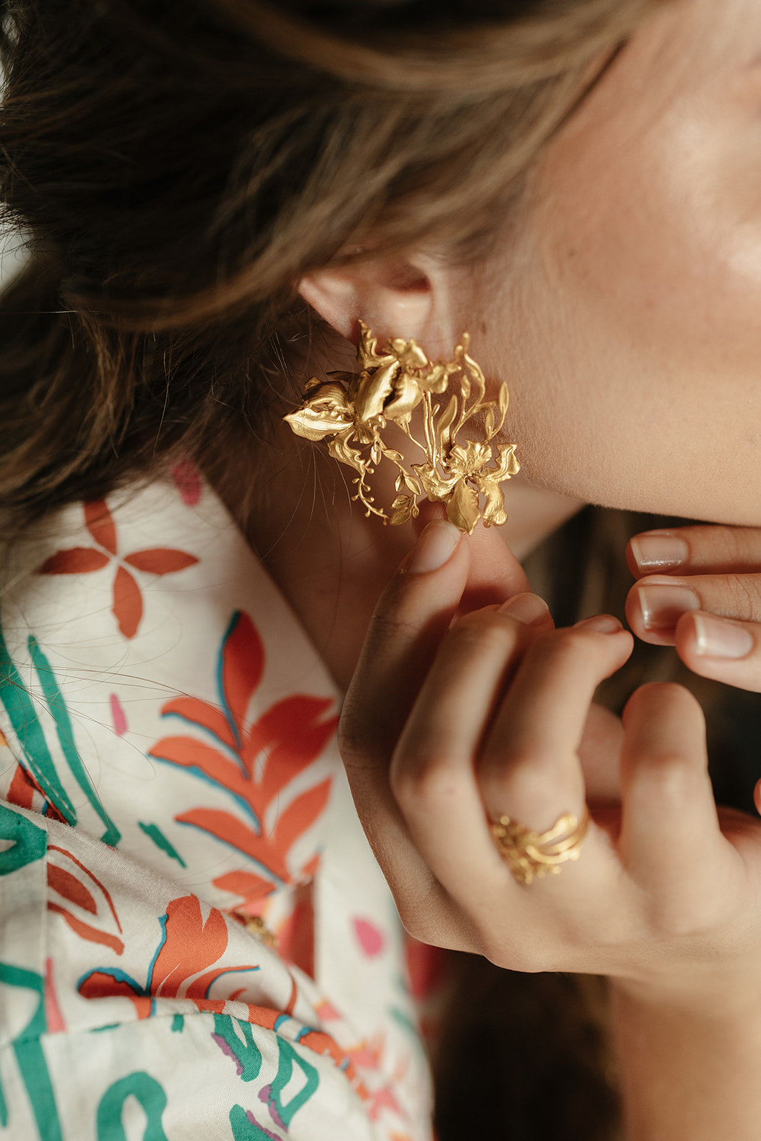 Nuestros pendientes están fabricados en latón y chapados en oro.