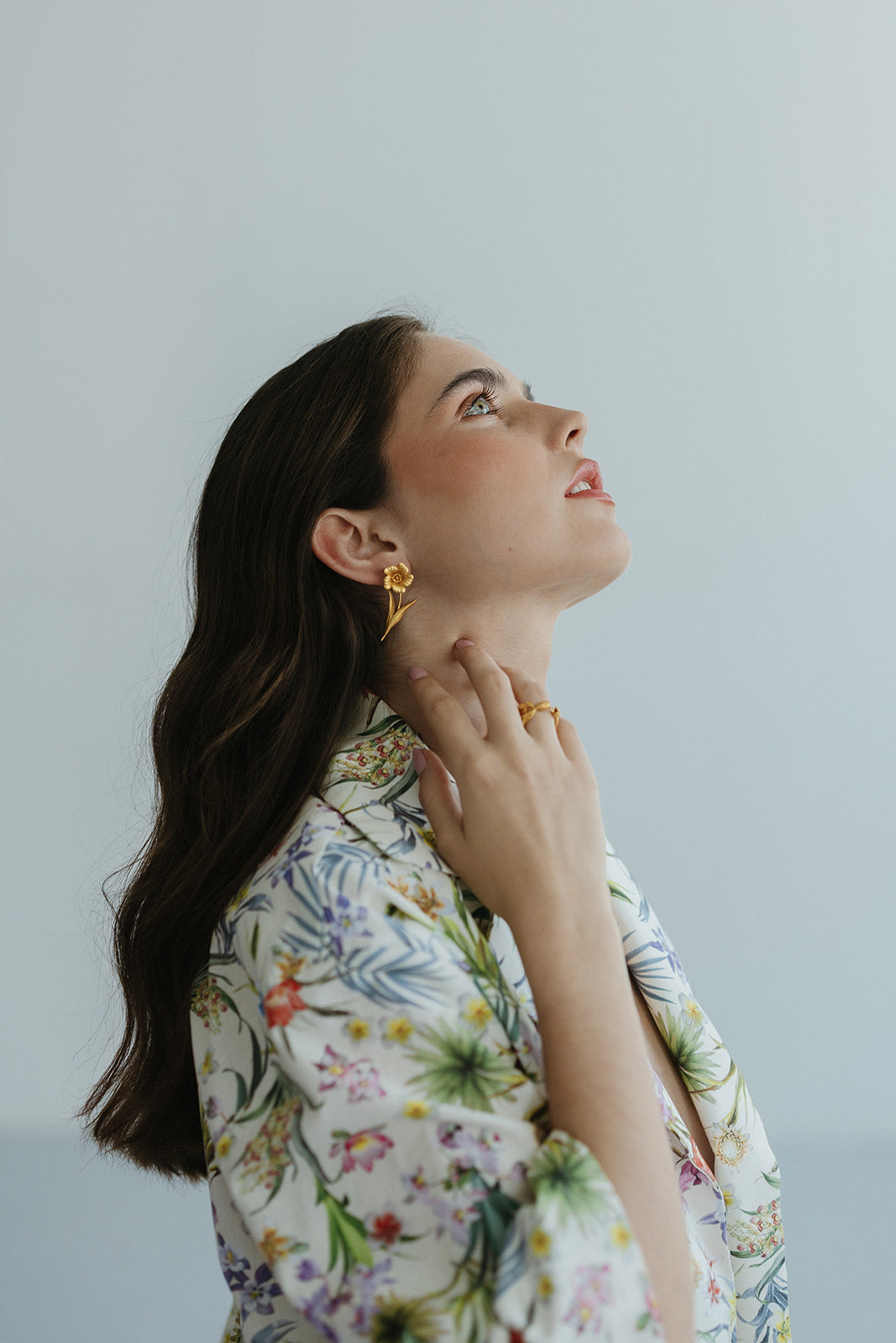 Nuestros pendientes están fabricados en latón y chapados en oro.