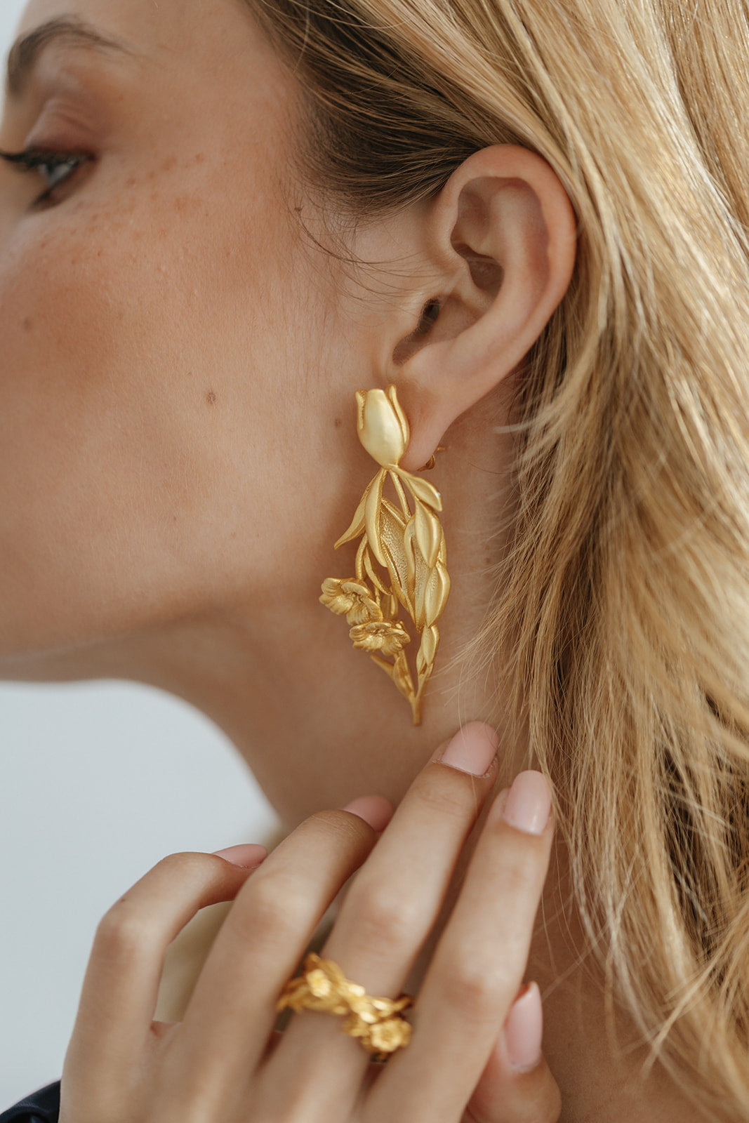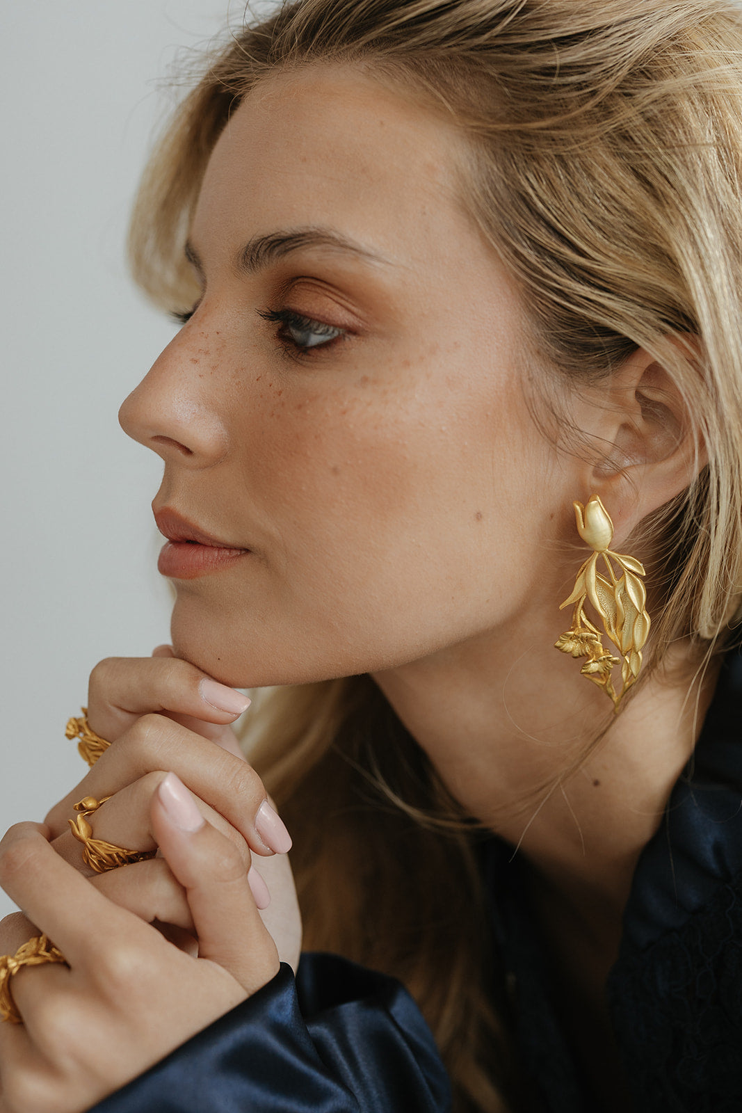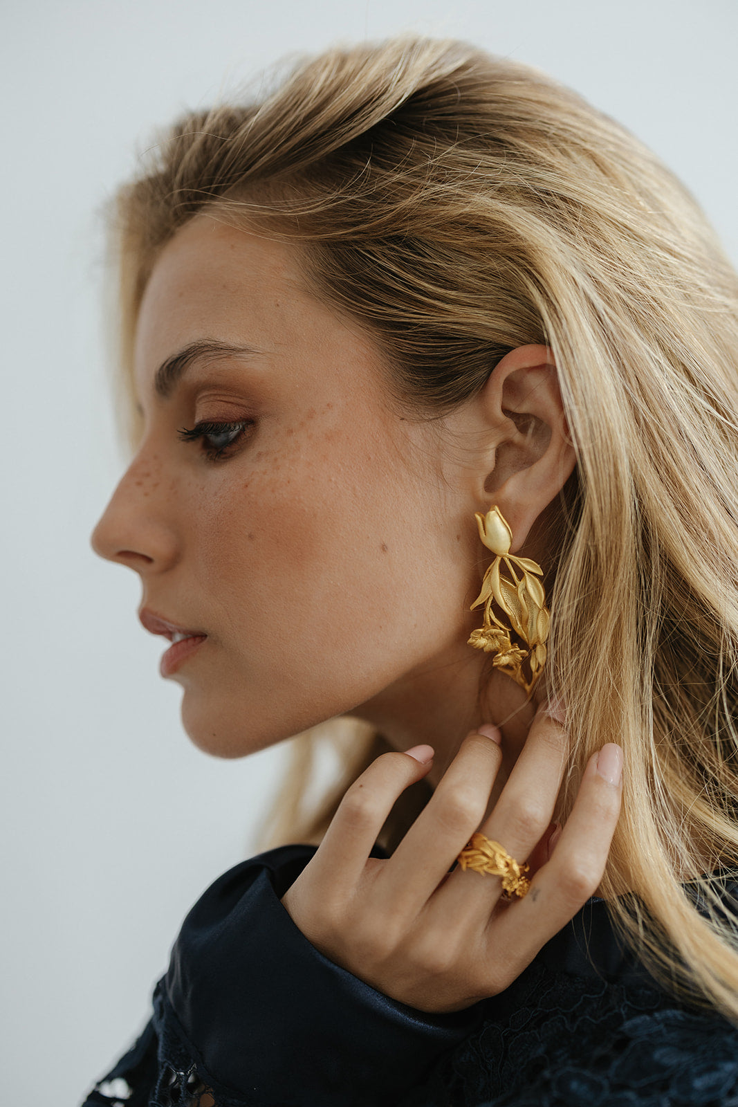 Nuestros pendientes están fabricados en latón y chapados en oro.