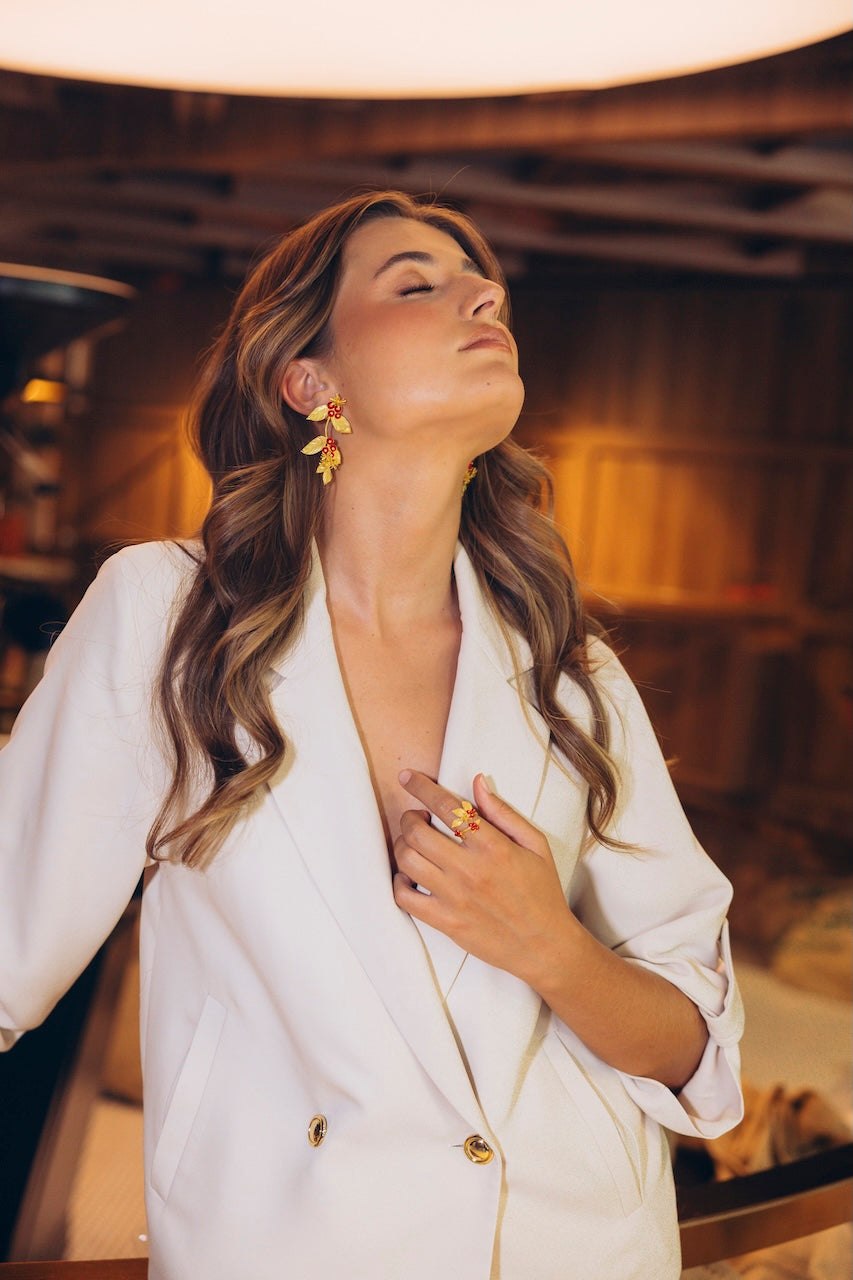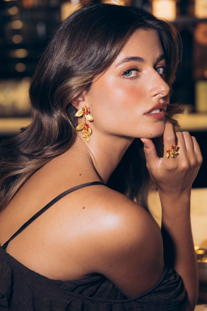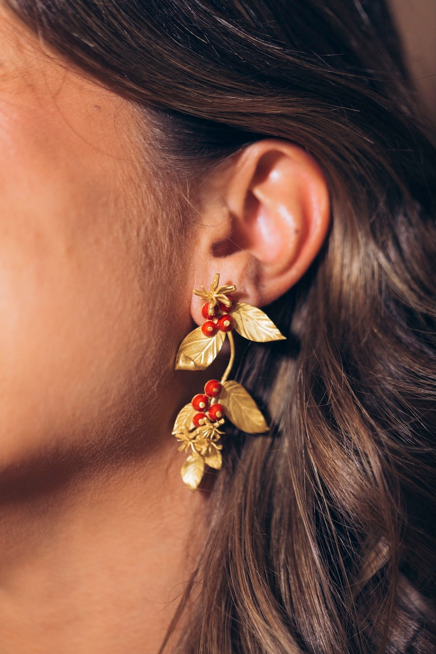 Nuestros pendientes están fabricados en latón y chapados en oro.