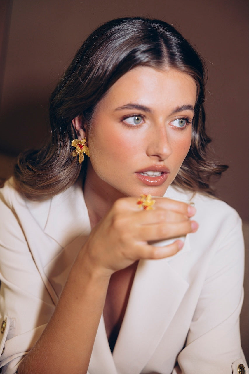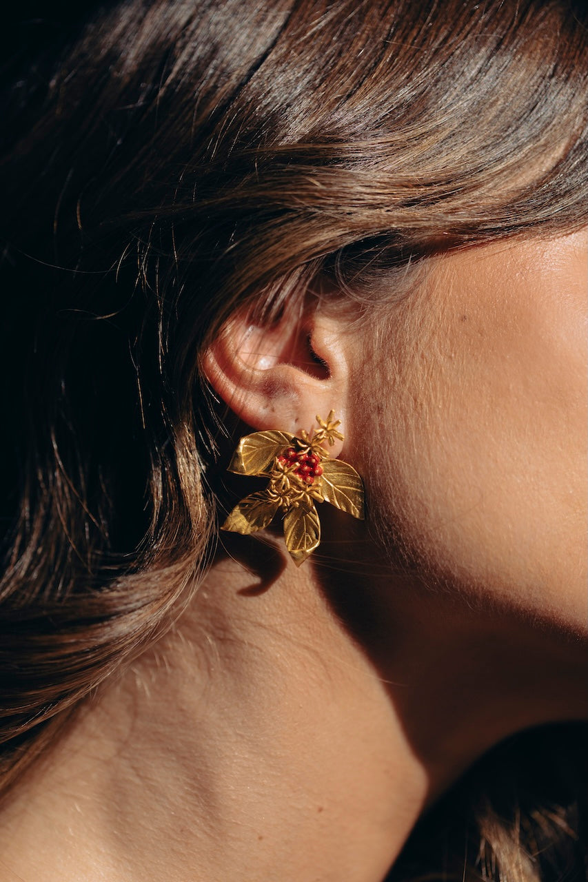Nuestros pendientes están fabricados en latón y chapados en oro.