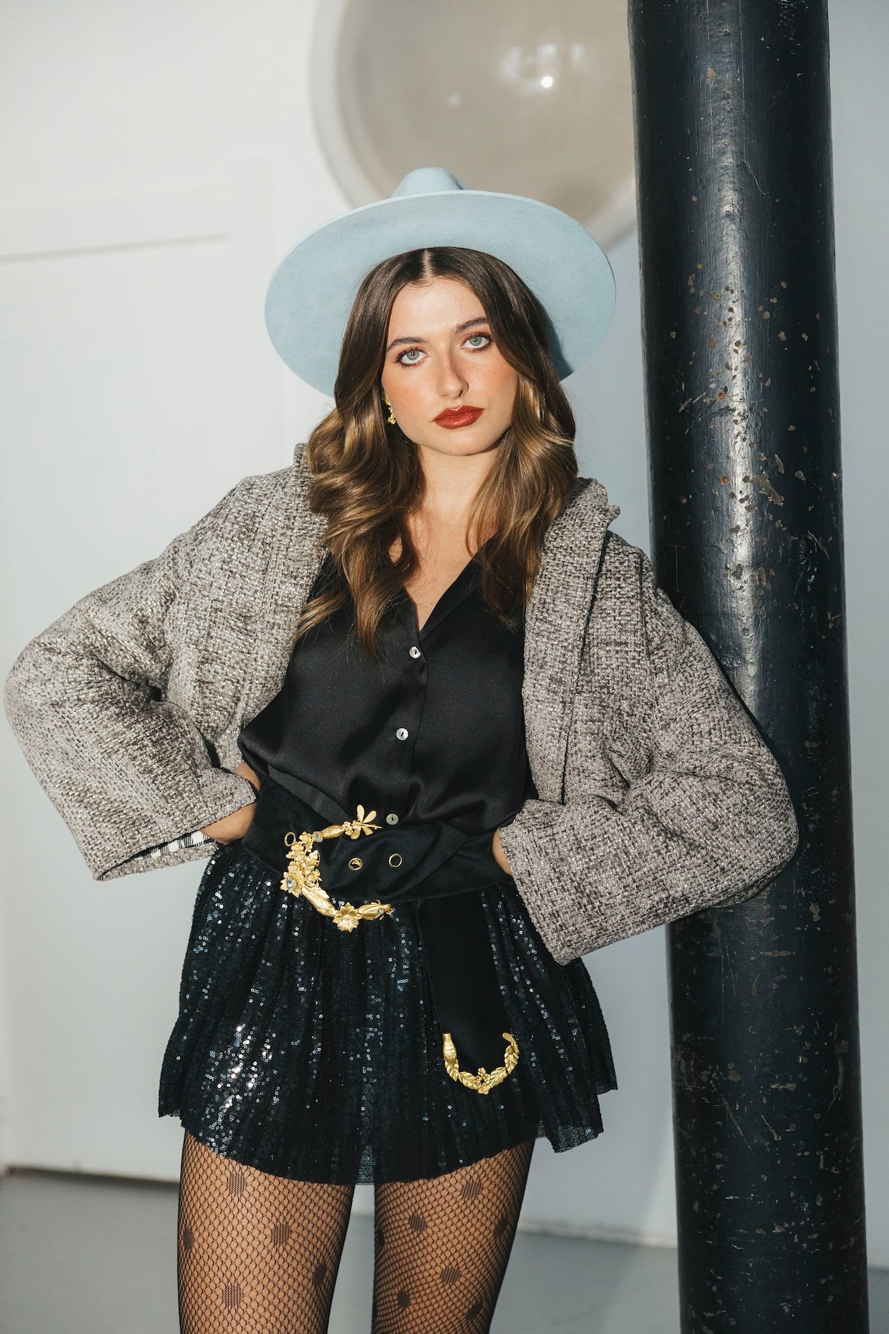 Este cinturón está hecho a medida. Está todo fabricado en latón bañado en oro.