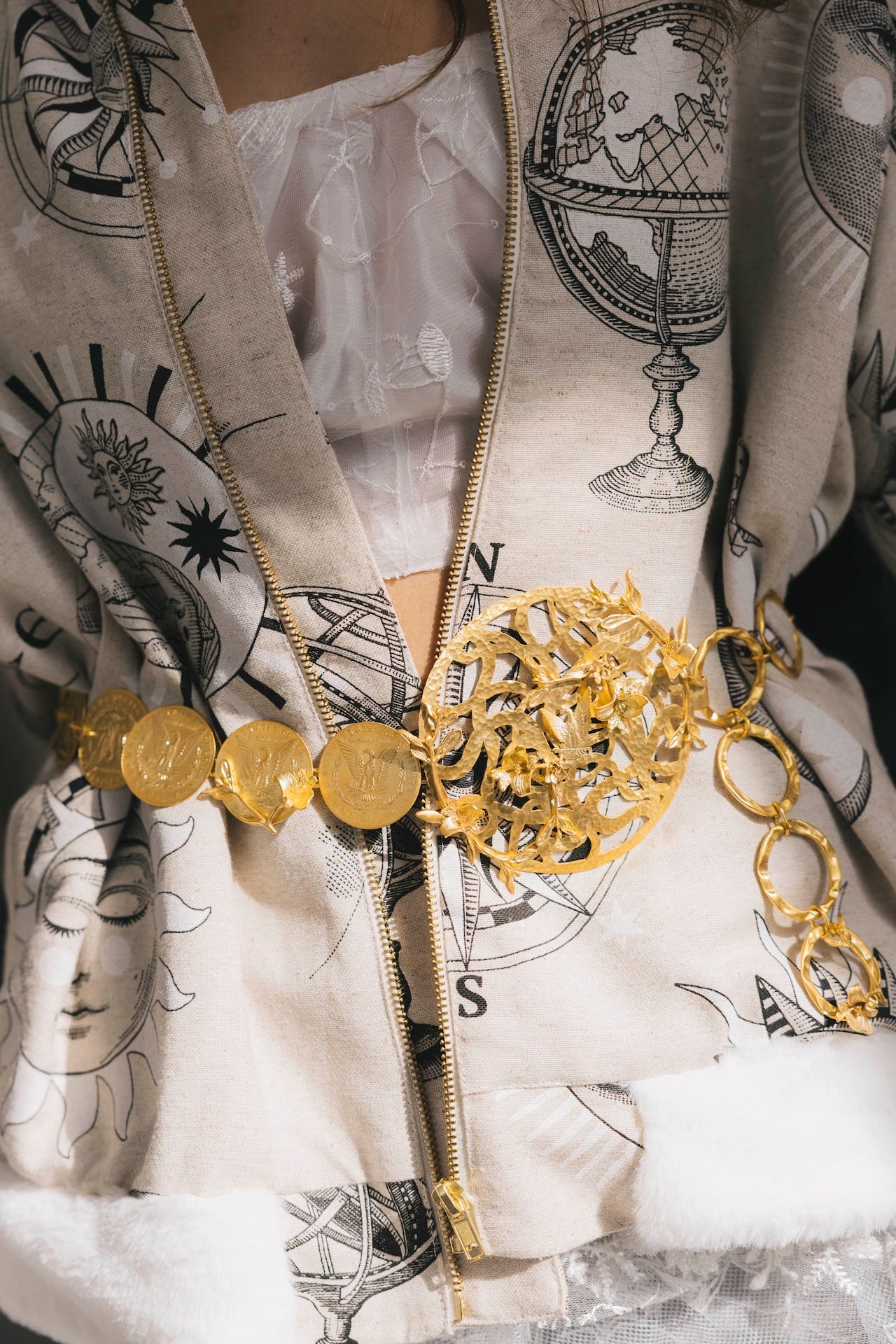 Este cinturón está hecho a medida. Está todo fabricado en latón bañado en oro.