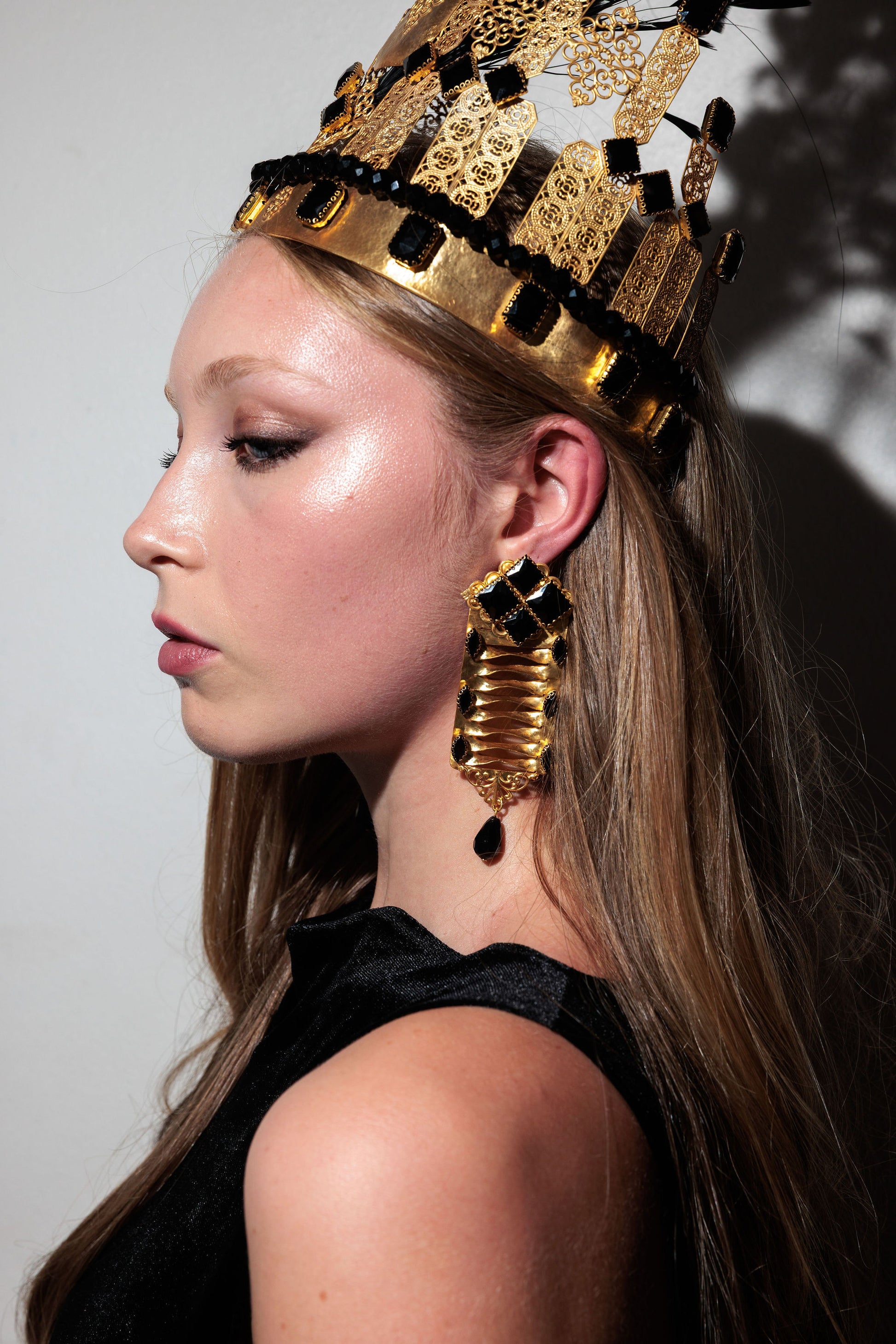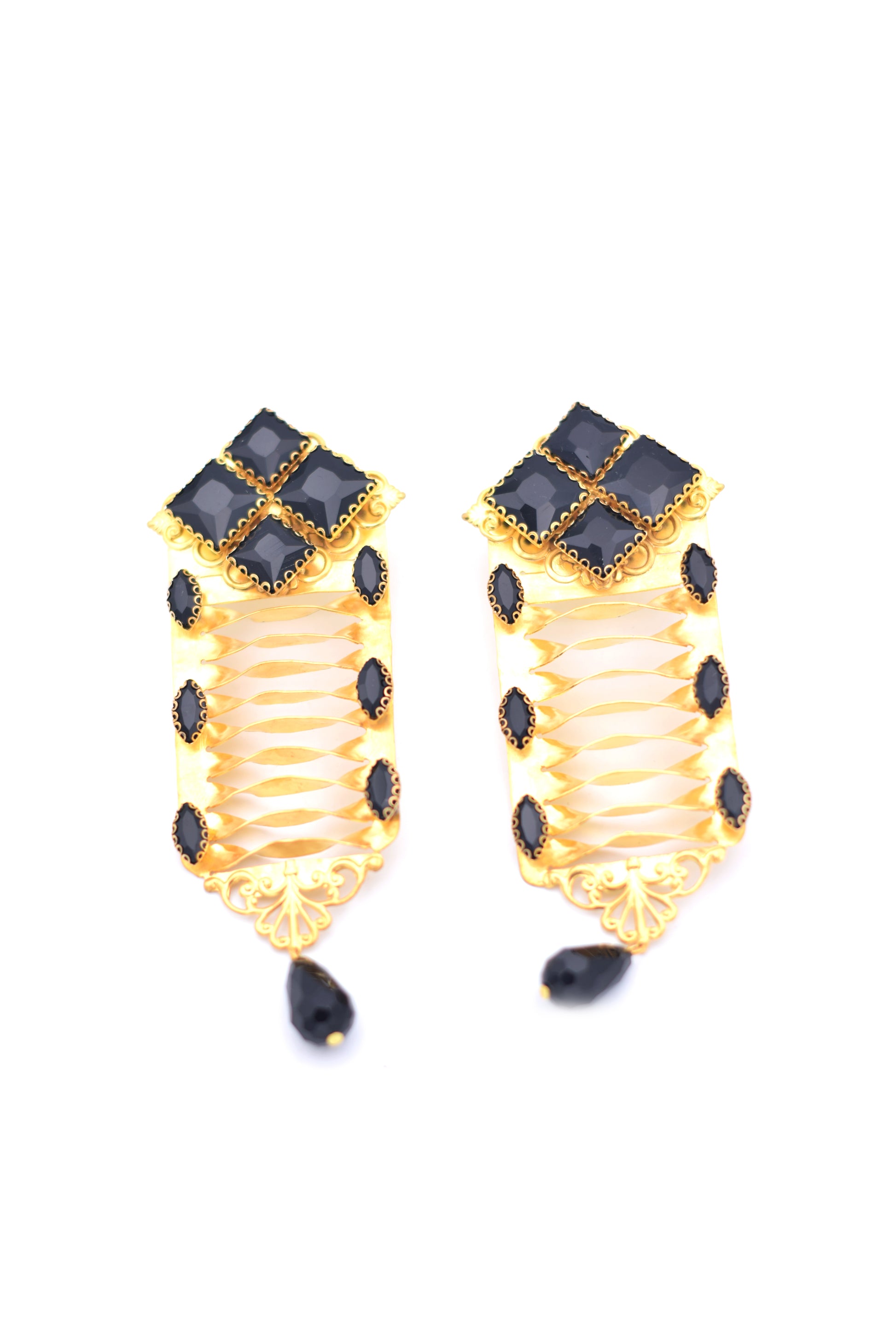 Os nossos brincos são feitos em latão, banhados a ouro e são vendidos ao par.