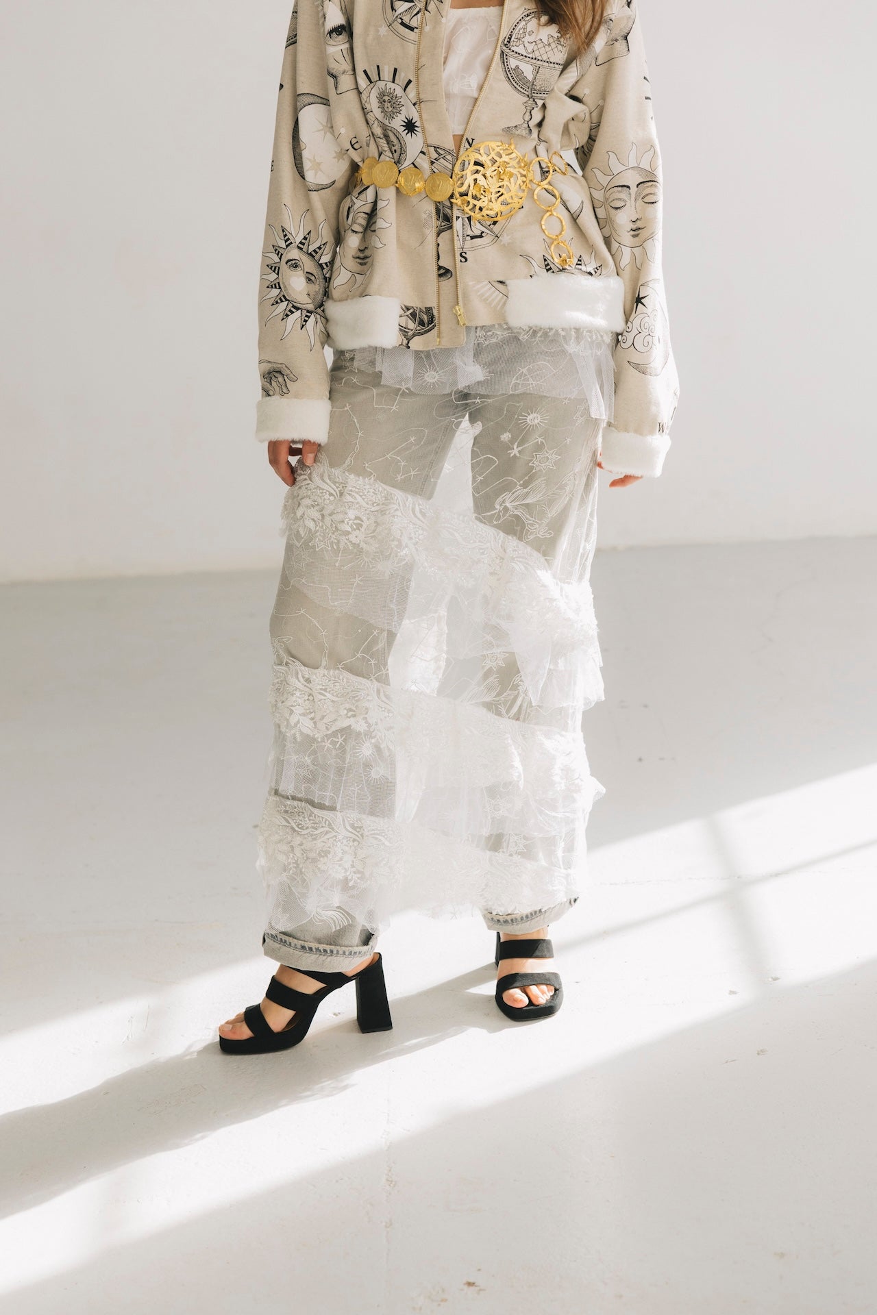 Esta saia tem tamanho único S/M/L. Não inclui o cinto.